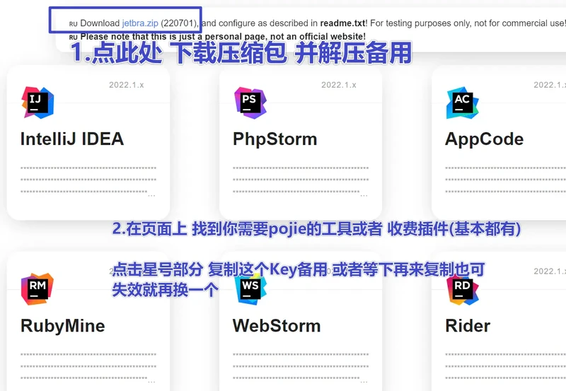 2. 下载 顶部的jetbra.zip 压缩包,并解压以备用 ****具体如图: