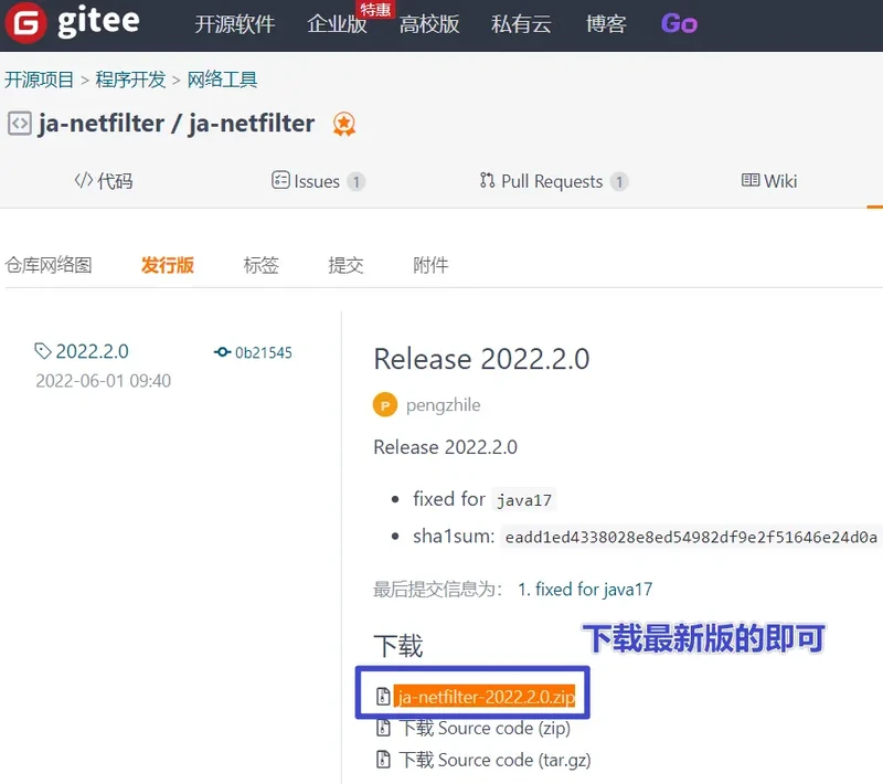 下载拦截器,并解压以备用(推荐放IDEA目录下),下载地址:https://gitee.com/ja-netfilter/ja-netfilter/releases