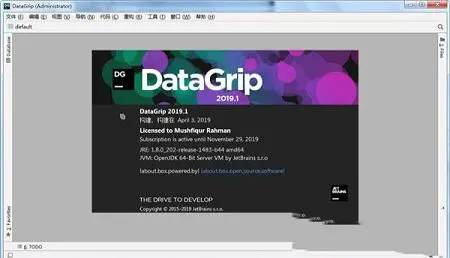 11、再次打开软件,JetBrains datagrip 2019.1中文破解版成功安装。