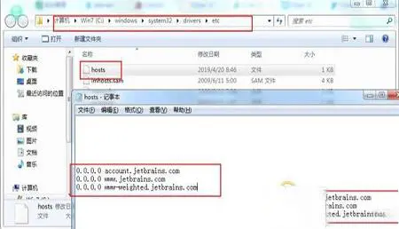 5、用快捷键win+R中输入c:windowssystem32driversetc,用记事本打开hosts文件后,将