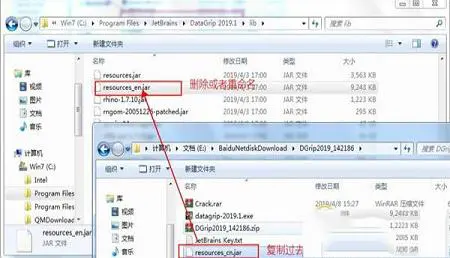 10、接下来软件默认为英文界面,我们打开安装目录下的“lib”文件夹,将汉化补丁“resources_cn.jar”复制入内即可,默认安装路径为C:Program FilesJetBrainsDataGrip 2019.1lib