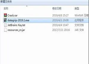 1、下载解压,得到jetbrains datagrip 2019.1原程序,汉化包,破解文件和激活码。