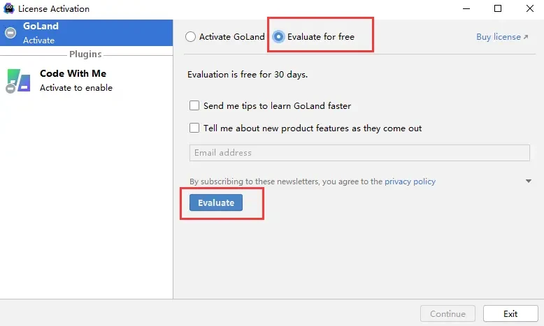 7. 选择 Evaluate for free --> Evaluate