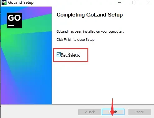 6. 选择 Run GoLand,点击 Finish