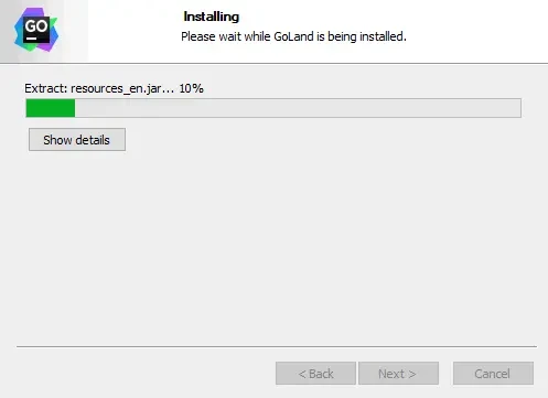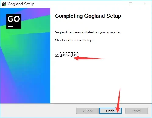 安装完成,勾选 Run Goland 并点击 Finish,结束安装并启动 Goland。