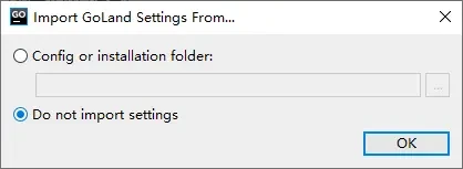 第一次启动 Goland 时会提示我们导入设置信息,这里我们选择第二项,不导入设置信息。