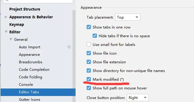 四个全关后,要把Mark modified打开,要不然不知道哪些是编辑过的文件。