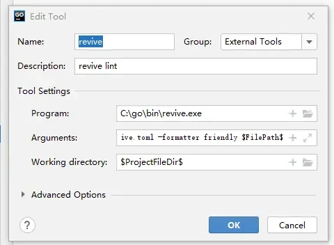 然后设置keymap快捷键时,如果找不到External Tools里的revive,可以重启一下goland就能找到了。