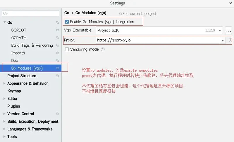 设置go modules,勾选enavle gomodules,代理:https://goproxy.io