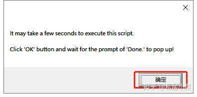 告诉我们,运行此补丁大约花费几秒钟,点击 确定,等待 Done 完成提示框出现,到这里,表示补丁安装成功。