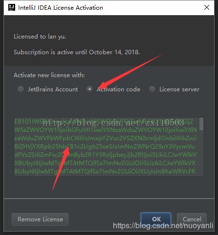 3、点击获得注册码,然后将注册码复制,粘贴到IDEA中