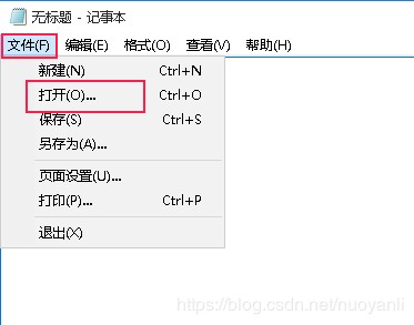 2、点击记事本的“文件”——“打开”。