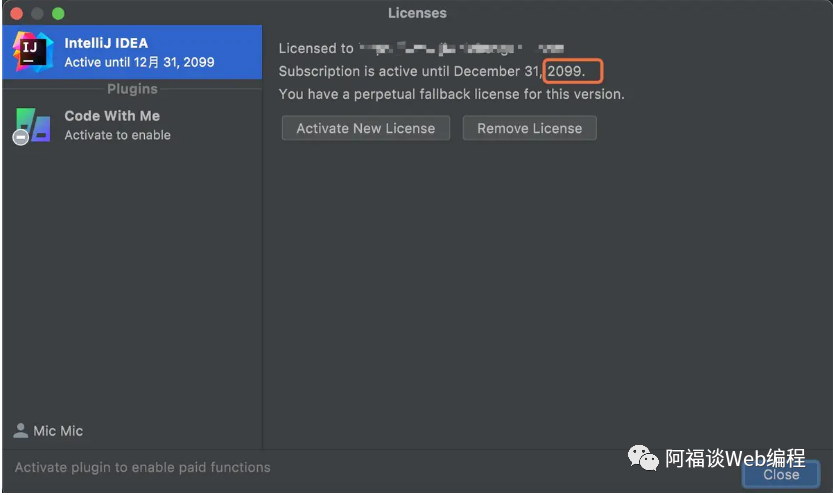 以下是博主免费激活之后的 Licenses 信息,激活到 2099 年,支持 Windows 和 Macos。