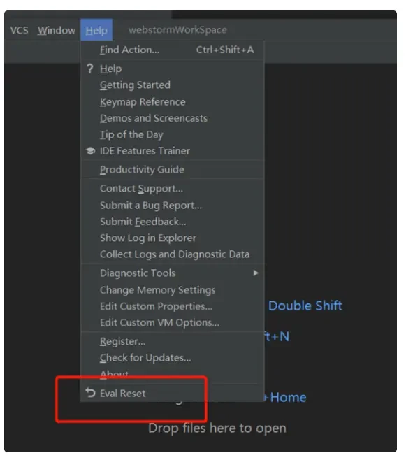 安装成功后,重启 IDEA. 可以通过点击 Help 菜单,若列表中出现 Eval Reset选项,则代表安装成功,可以参考下面的图示。