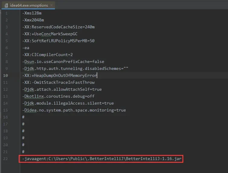 -javaagent:C:UsersPublic.BetterIntelliJBetterIntelliJ-1.16.jar