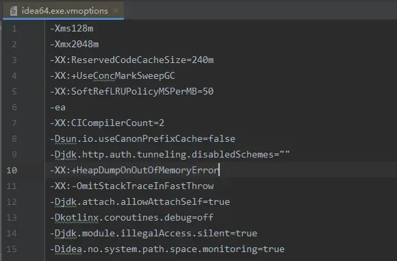 不过这里建议将配置都放到bin目录下的idea64.exe.vmoptions这个文件,统一管理