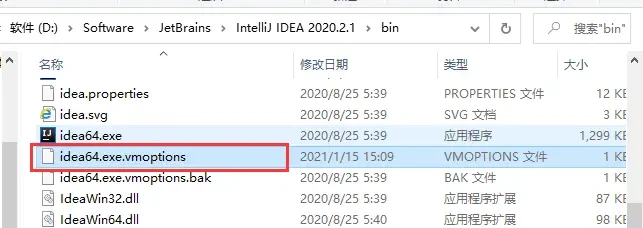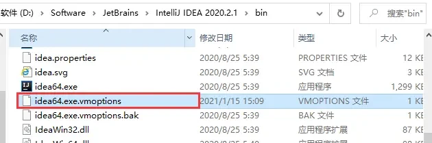 在IDEA安装目录的bin目录下打开“idea64.exe.vmoptions”这个文件,在最后加入