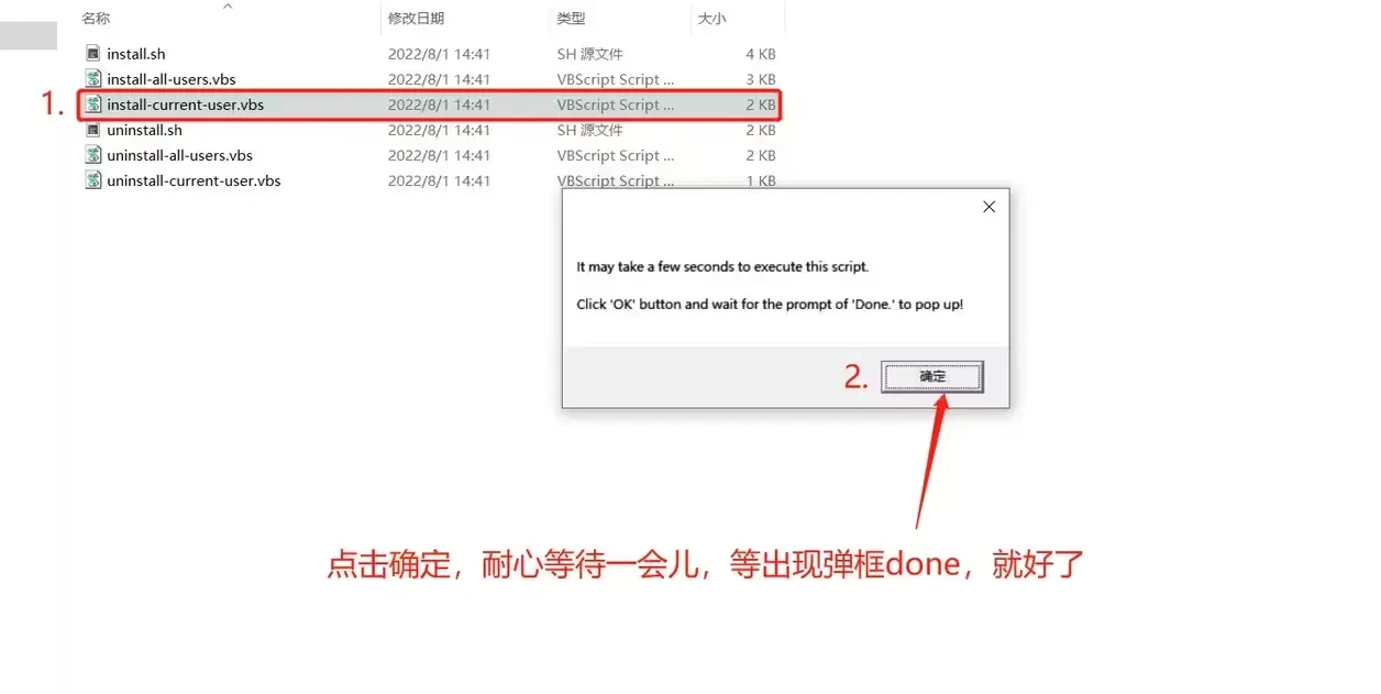 4. 然后再执行install-current-user.vbs(当前账户) 或者 install-all-user.vbs(此电脑所有账户),根据个人意愿选择,直接双击打开即可
