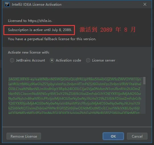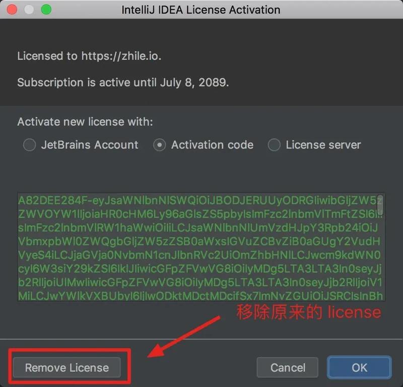 若你的 IDEA 已经使用了老的 License, 注意移除,否则会导致激活不成功。