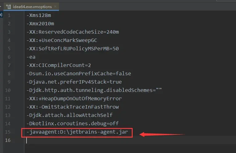 -javaagent:D:jetbrains-agent.jar