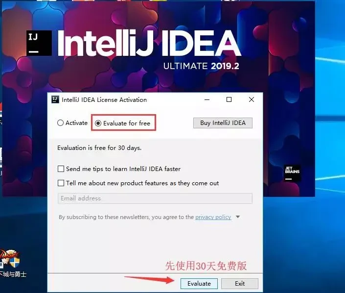 1.打开已经安装好的 IDEA, 我们选择 30 天免费试用,先进去再说:
