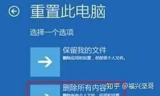4、按需要选择【保留我的文件】或【删除所有内容】;