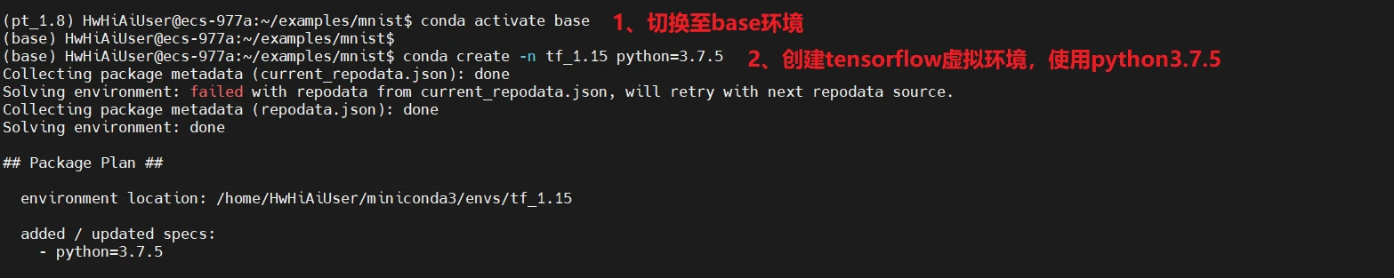 1、切换至base,创建tensorflow虚拟环境——conda activate base