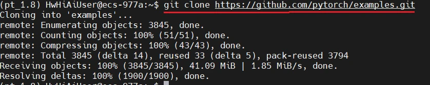 使用git clone命令下载例程。git clone https://github.com/pytorch/examples.git