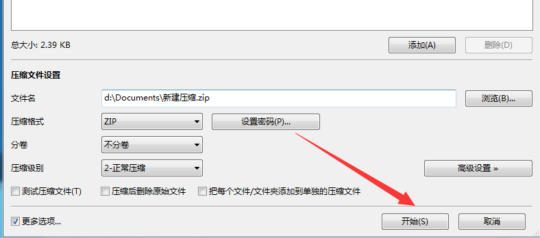 最后点击“开始”的按钮,软件就会进行压缩了。这样设定后所压缩的压缩包就是最小的了。