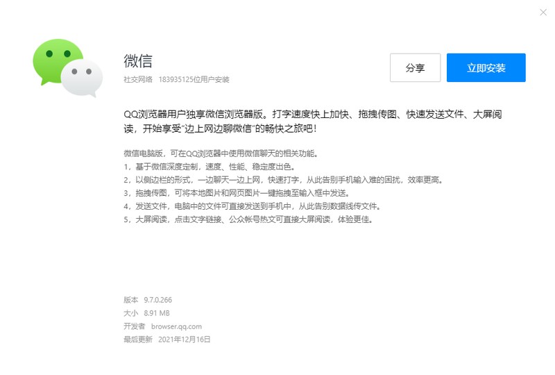 正常的微信网页版是已经使用不了了,但如果你电脑有QQ浏览器,那可以在浏览器的应用中心安装QQ浏览器版微信,实现微信网页版登录。