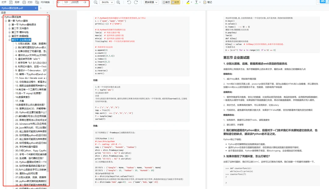 ⑤历年互联网企业Python面试真题,复习时非常方便