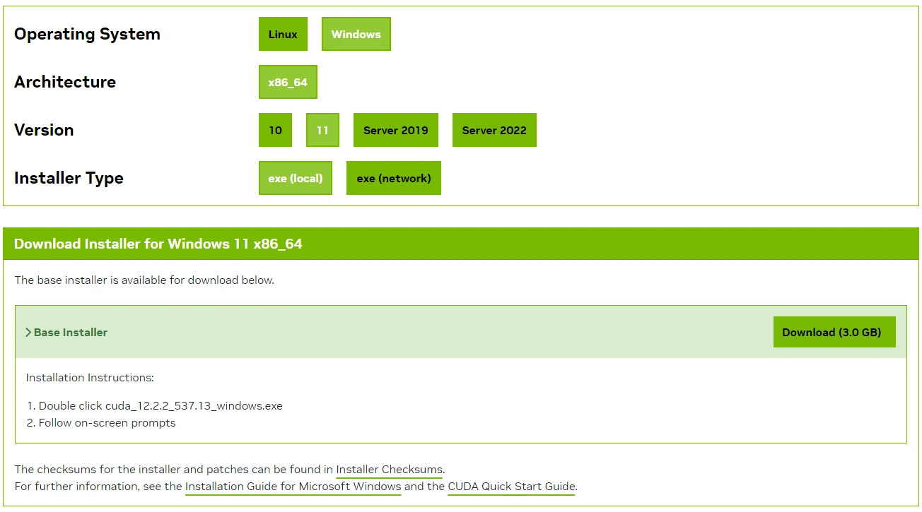 CUDA12.1(cuda_12.1.0_531.14_windows.exe) 与 CUDNN V8.9.5(cudnn-windows-x86_64-8.9.5.29_cuda12-archive.exe)