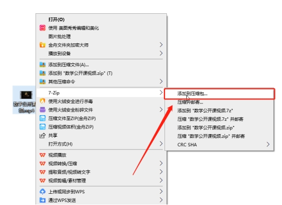 1、找到要压缩的1G文件,鼠标右键选择7zip,“添加到压缩包...”。