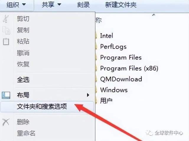 2、由于此文件夹默认是隐藏的,可以先点击组织设置隐藏文件夹显示。