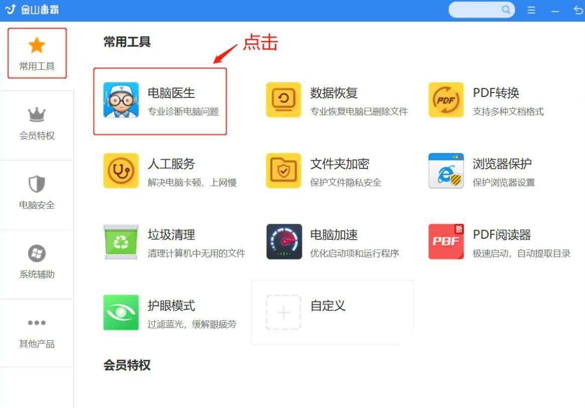 2、打开【金山毒霸】,点击右下角的【百宝箱】。