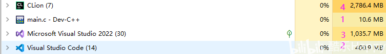 Clion:对C的支持最为强大,通过cmake可调速,缺点是太占内存了