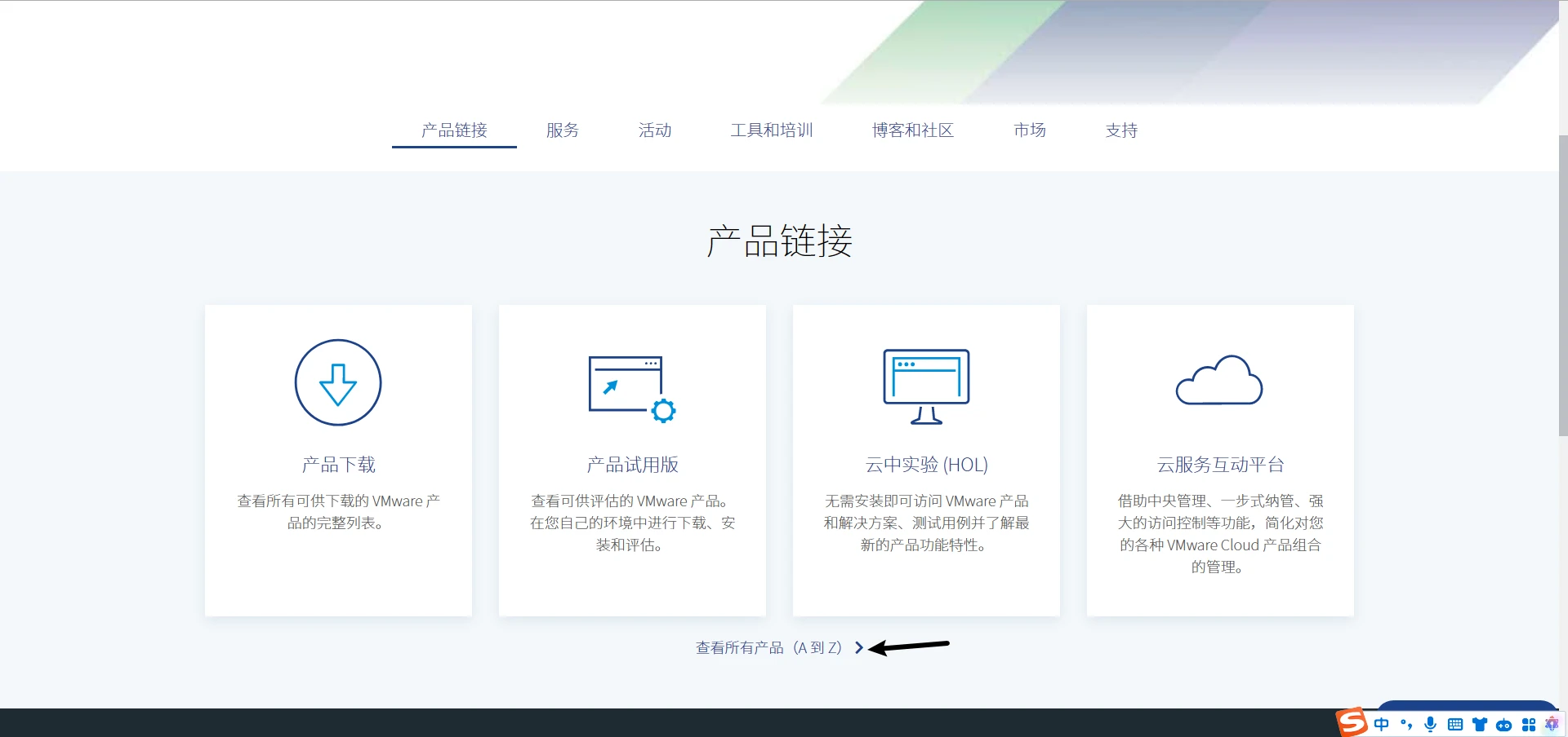 点击“查看所有产品(从A到Z)”按钮