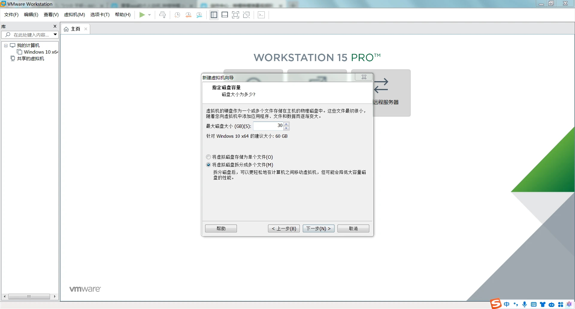 创建完成后自定义硬件(内存分配用本机内存的一半)