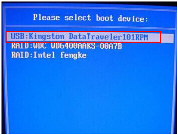 插入U盘启动盘后重启,出现开机页面时按下U盘启动快捷键进入启动项界面,将U盘设置为第一选项。