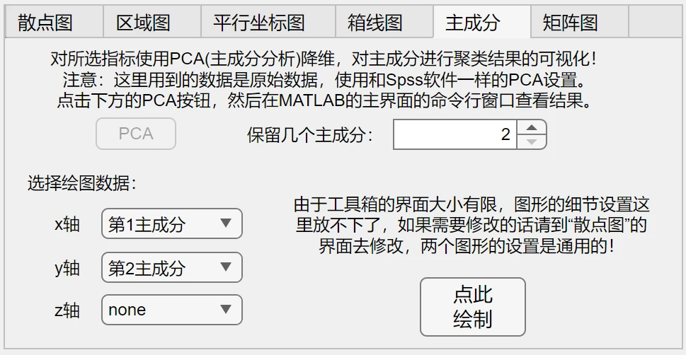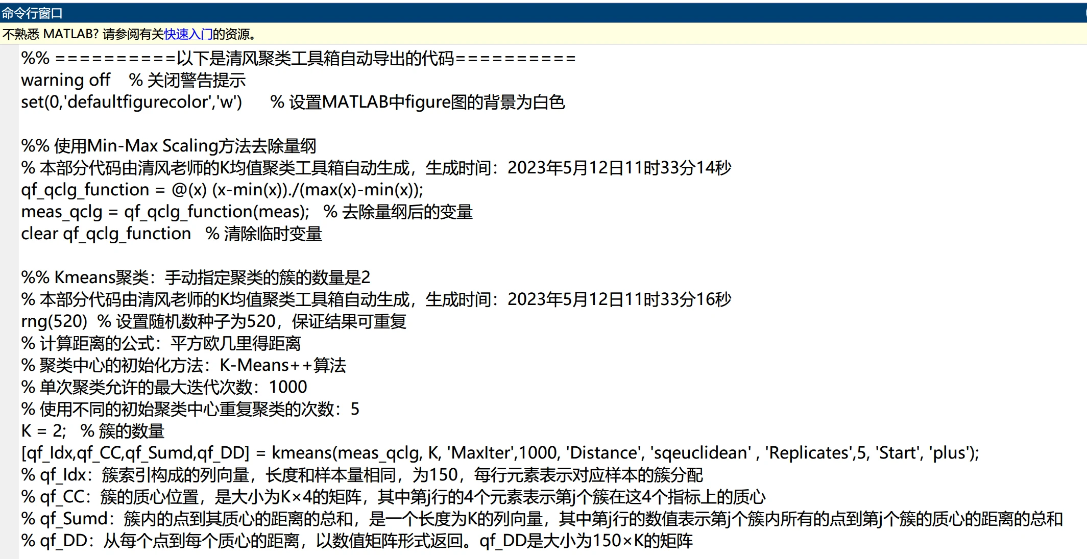 工具箱中所有的操作都能自动在命令行窗口生成相应的代码,复制这个代码运行后你就能得到和工具箱相同的结果,聚类、可视化、计算统计量、假设检验都可以!!!