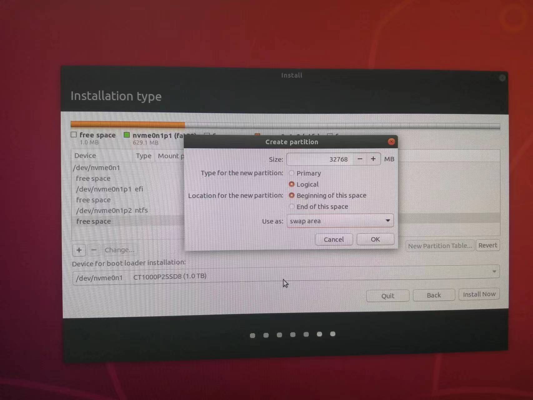 1、swap area:逻辑分区,大小设置为电脑内存大小(8G/16G/32G);