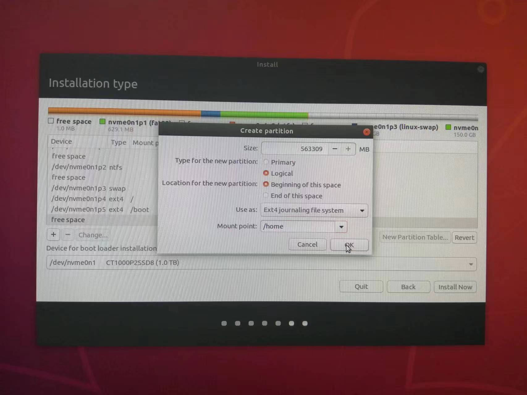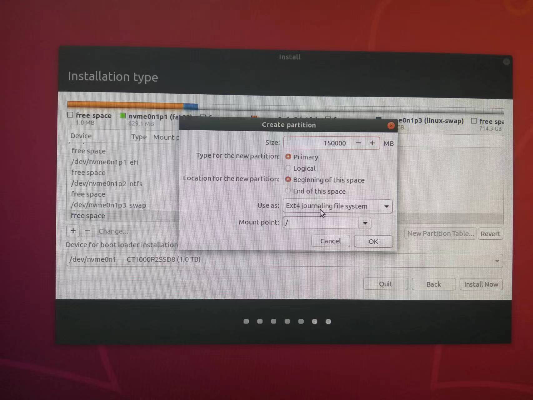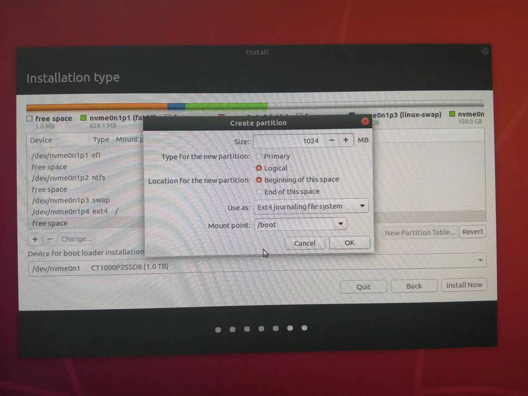 启动目录,开机启动所需目录。可根据自己整体内存的大小比例调整,若双系统分出100G左右用来装Ubuntu,此处分200M左右即可。