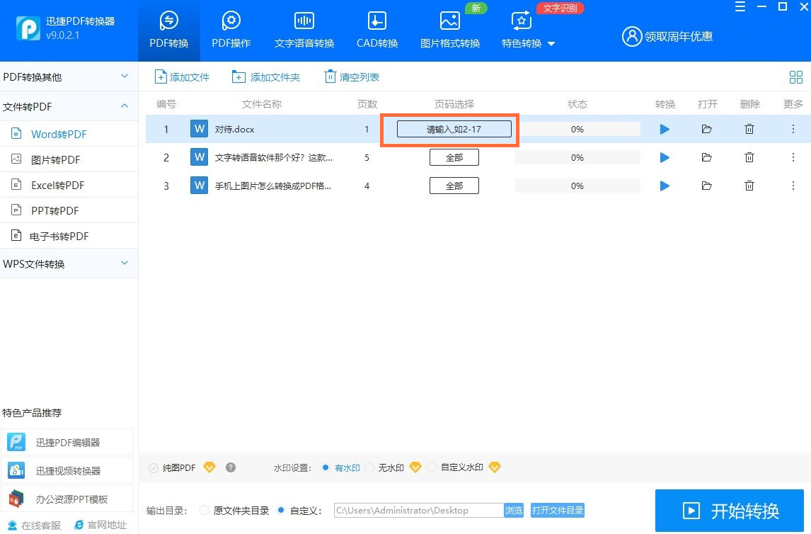 在转换时,还可以对转换页码进行选择,也可以进行全部转换。