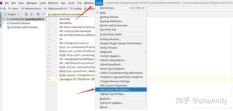 6、通过phpstrom打开(一定是通过运行phpStrom来打开文件、如果直接修改文件、会出现无效)phpstrom64.exe.vmoptions文件,并在最后一行添加以下代码: