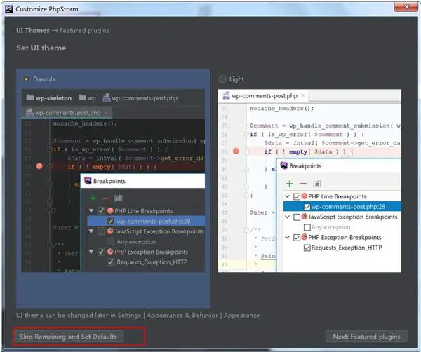 3、再运行桌面上生成的phpstorm 2019.1软件图标,选择do not import settings点击ok,再选“skip.。。”跳过;