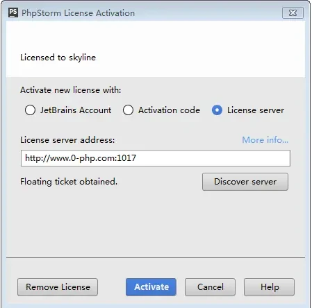 然后继续单击License server 输入:http://www.0-php.com:1017 PHPstorm完美运行!!!!!