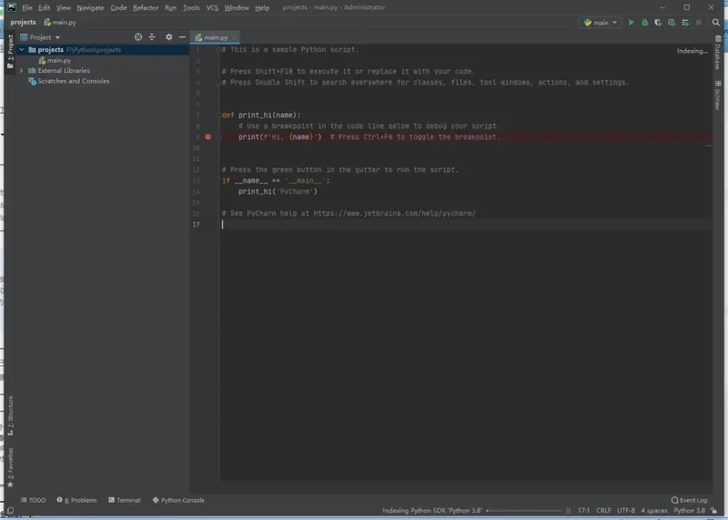重点:在使用最新版pycharm之前需要先升级python环境至3.8及其以上!!!