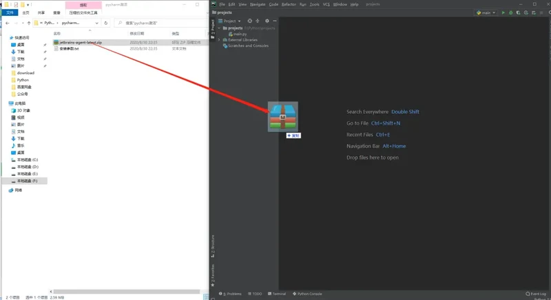 15.接下来将我们的激活插件直接拖入到pycharm202.2.1版本。