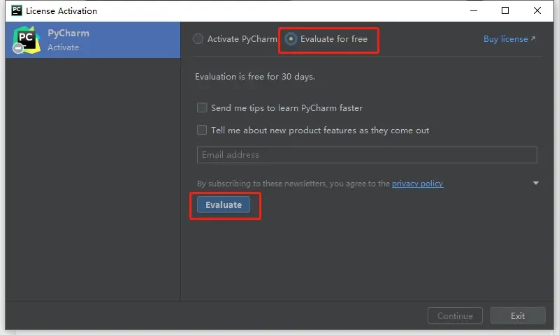 9.选好之后直接skip,然后按下图先选择选择免费进入pycharm。