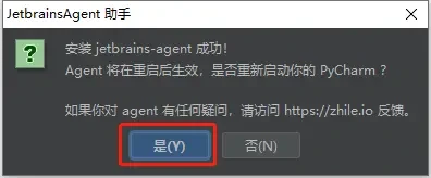18.弹出如下窗口之后直接选择是。然后等待pycharm自动重启!